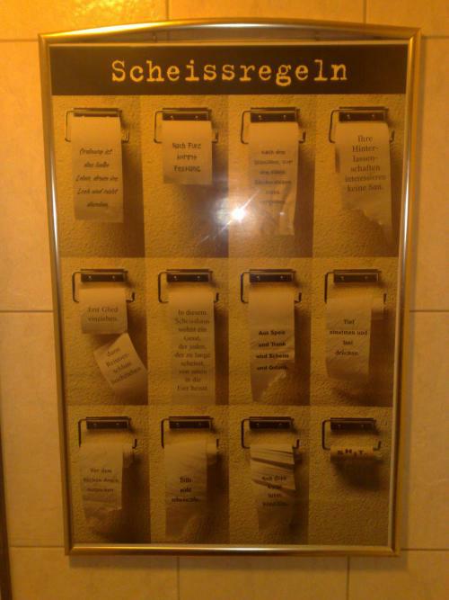 Das lustige und der Grund warum ich drüber schreibe, ist aber die Entdeckung auf der Toilette gewesen, weil dort hängen die Scheissregeln.
